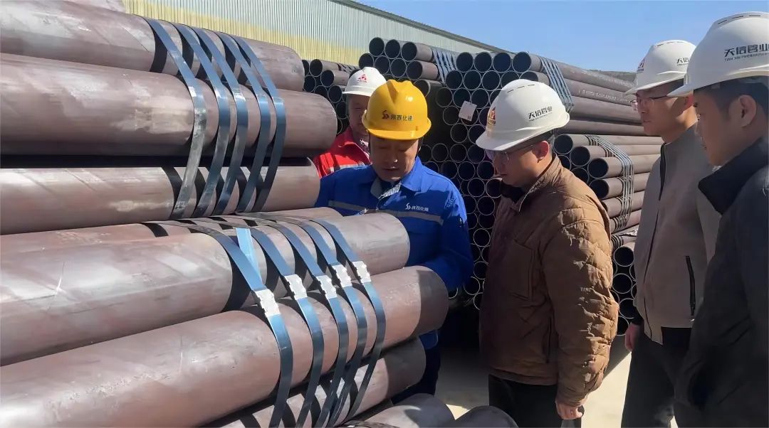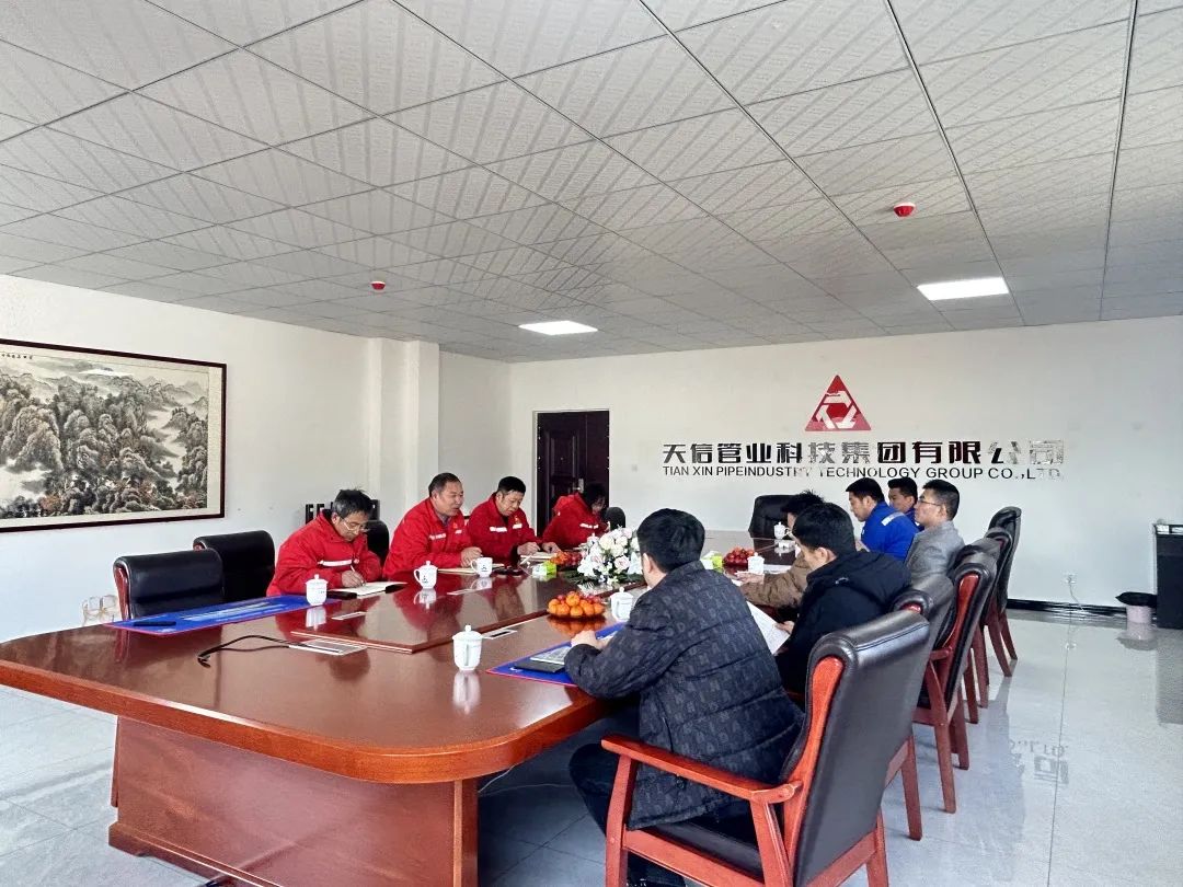 3月1日,延長石油集團(tuán)油氣勘探公司和陜西化建工程有限責(zé)任公司組織相關(guān)部門負(fù)責(zé)人在勘探公司劉昊科長的帶領(lǐng)下蒞臨天信管業(yè)科技集團(tuán)有限公司,檢查指導(dǎo)工作。