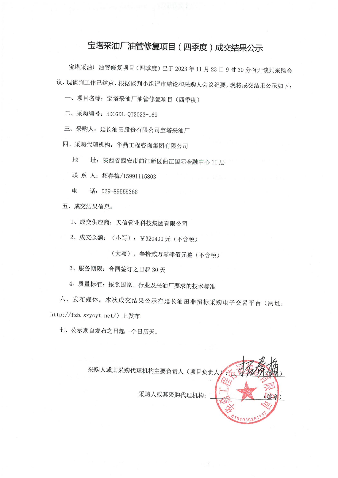 寶塔采油廠油管修復(fù)項(xiàng)目(四季度)已于2023年11月23日9時(shí)30分召開談判采購會(huì)